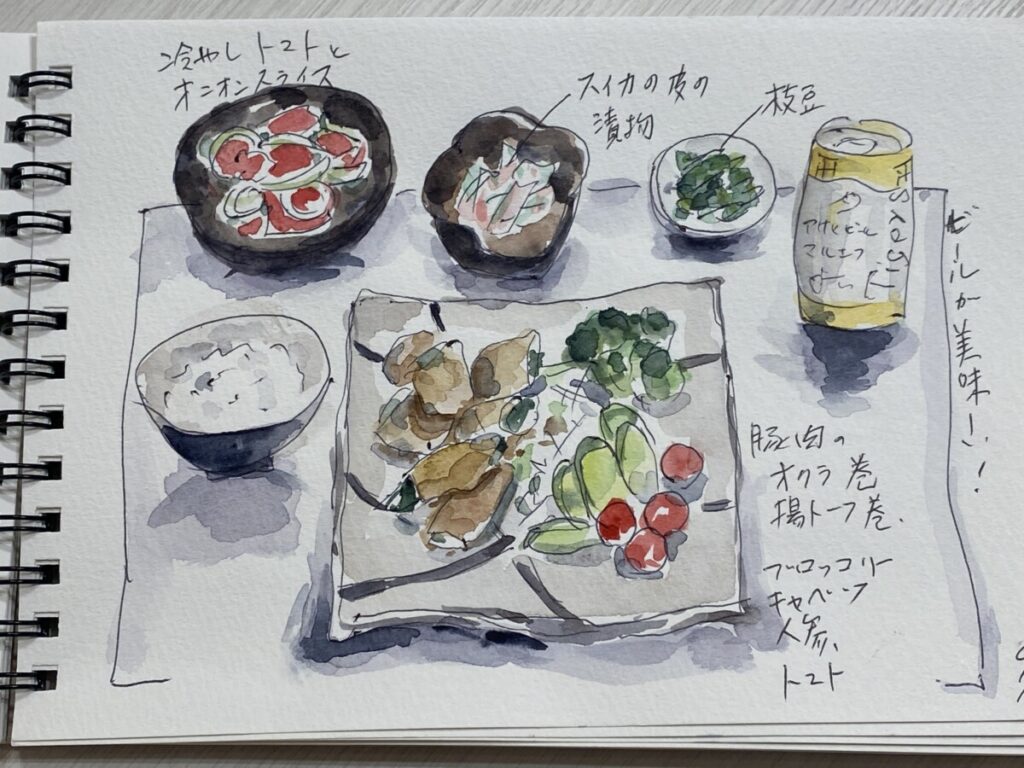 BLOG 義母ごはん 義母のT子さんは料理上手。 しかも、絵もとっても上手。 (三竿家は芸術一家) 日々の食卓をスケッチされてて、それがめちゃええ感じなのでご紹介。 本出せるわー! (さ) 2025-11-05 | Posted in BLOG < 基礎配筋検査