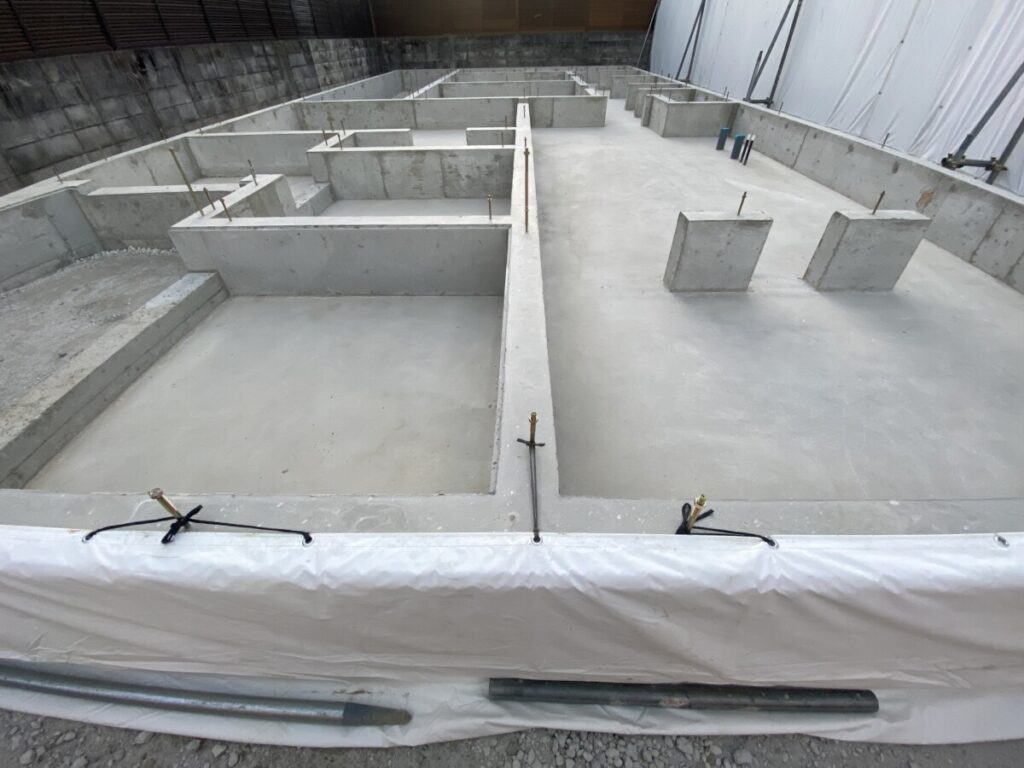 基礎型枠の脱型(コンクリートを固めるための側板を取り外す作業)を終え、綺麗なコンクリートの表情が出てまいりました!